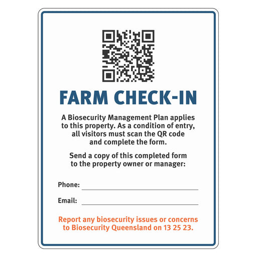 View full detailsBiosecurity Sign - Queensland Farm Check-In with QLD DPI QR code