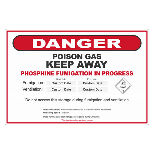 View full detailsBiosecurity Sign - Phosphine Fumigation Danger Sign (Australia Wide)
