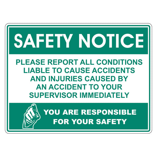 Safety Notice Sign - Please Report All Conditions Liable to Cause Accidents
