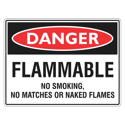 Danger Sign - Flammable No Smoking, No Matches Or Naked Flames