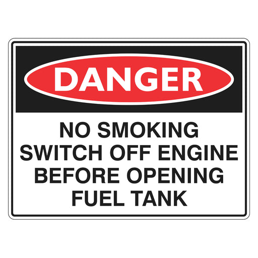 Danger Sign - No Smoking Switch Off Engine Before Opening Fuel Tank