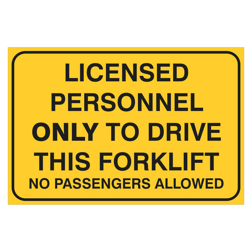 Forklift Sign - Licensed Personnel Only No Passengers Allowed