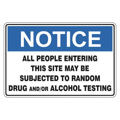 Notice Sign - All People Entering This Site May Be Subjected To Random Drug And/Or Alcohol Testing