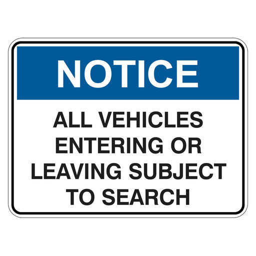 Notice Sign - All Vehicles Entering Or Leaving Subject To Search