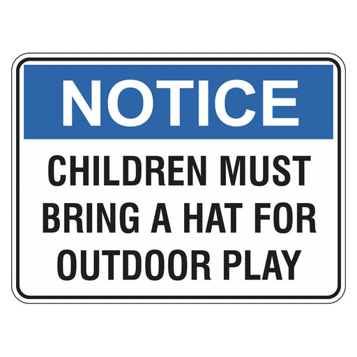 Notice Sign - Children Must Bring A Hat For Outdoor Play