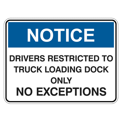 Notice Sign - Drivers Restricted To Truck Loading Dock Only No Exceptions