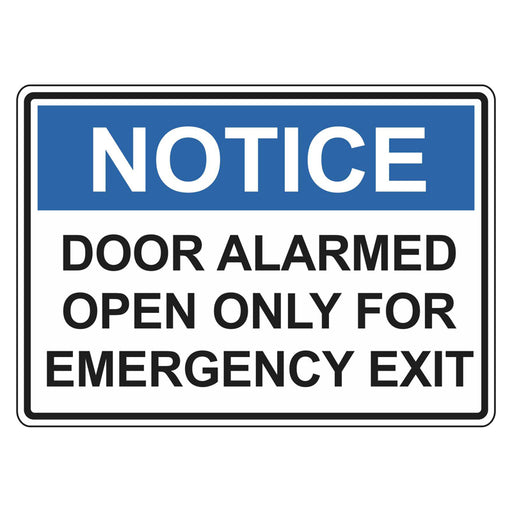 Notice Sign - Door Alarmed Open Only For Emergency Exit
