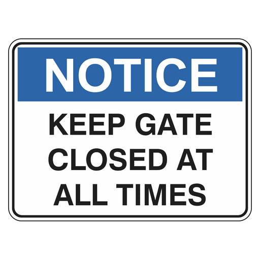 Notice Sign - Keep Gate Closed At All Times