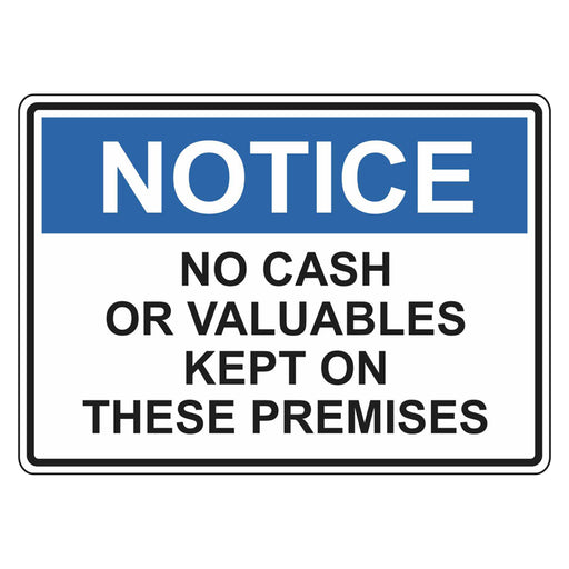 Notice Sign - No Cash Or Valuables Kept On These Premises