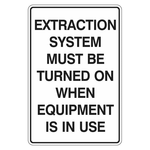 View full detailsMandatory Sign - Extraction System Must Be Turned On When Equipment Is In Use