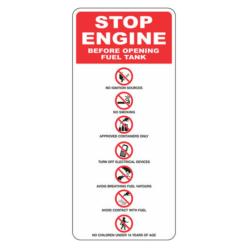 Prohibition Sign - Stop Engine Before Opening Fuel Tank