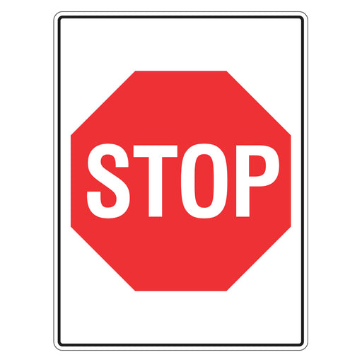 A stop sign is recognised by white text on a red background. Traffic signs are in the shape of a octagon and conform to Australian Standards 1742, AS 1743 and AS 1906.