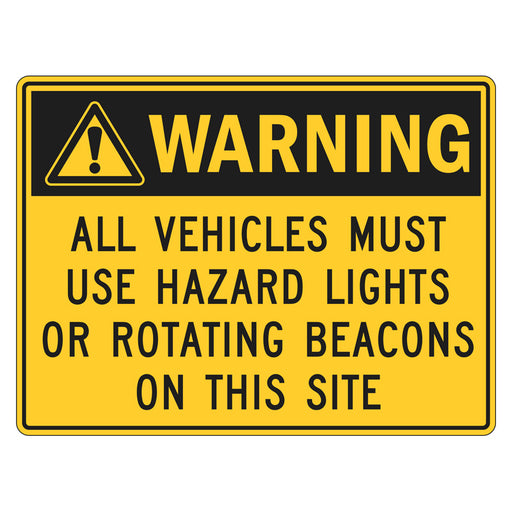View full detailsWarning Sign - All Vehicles Must Use Hazard Lights On This Site
